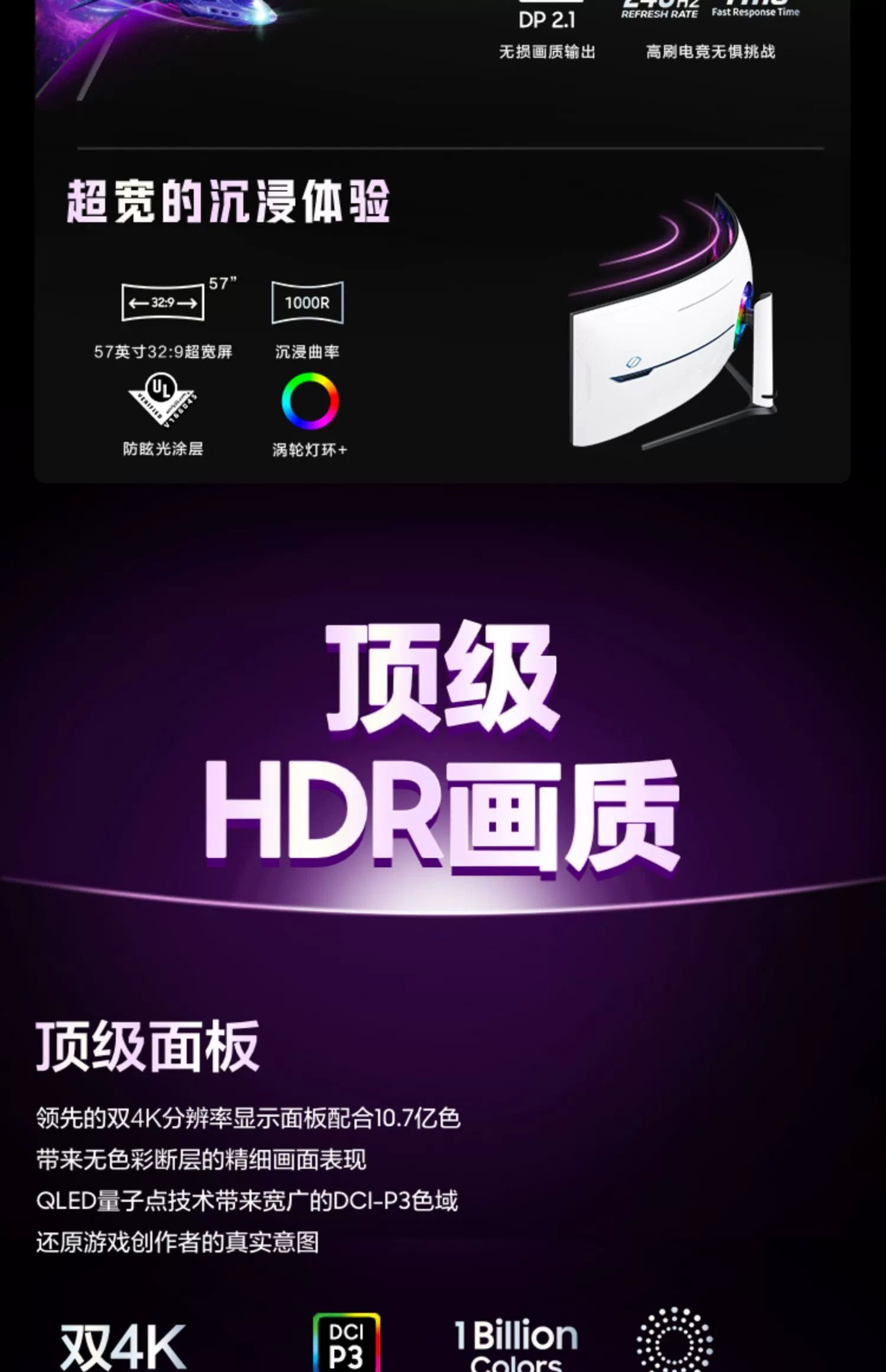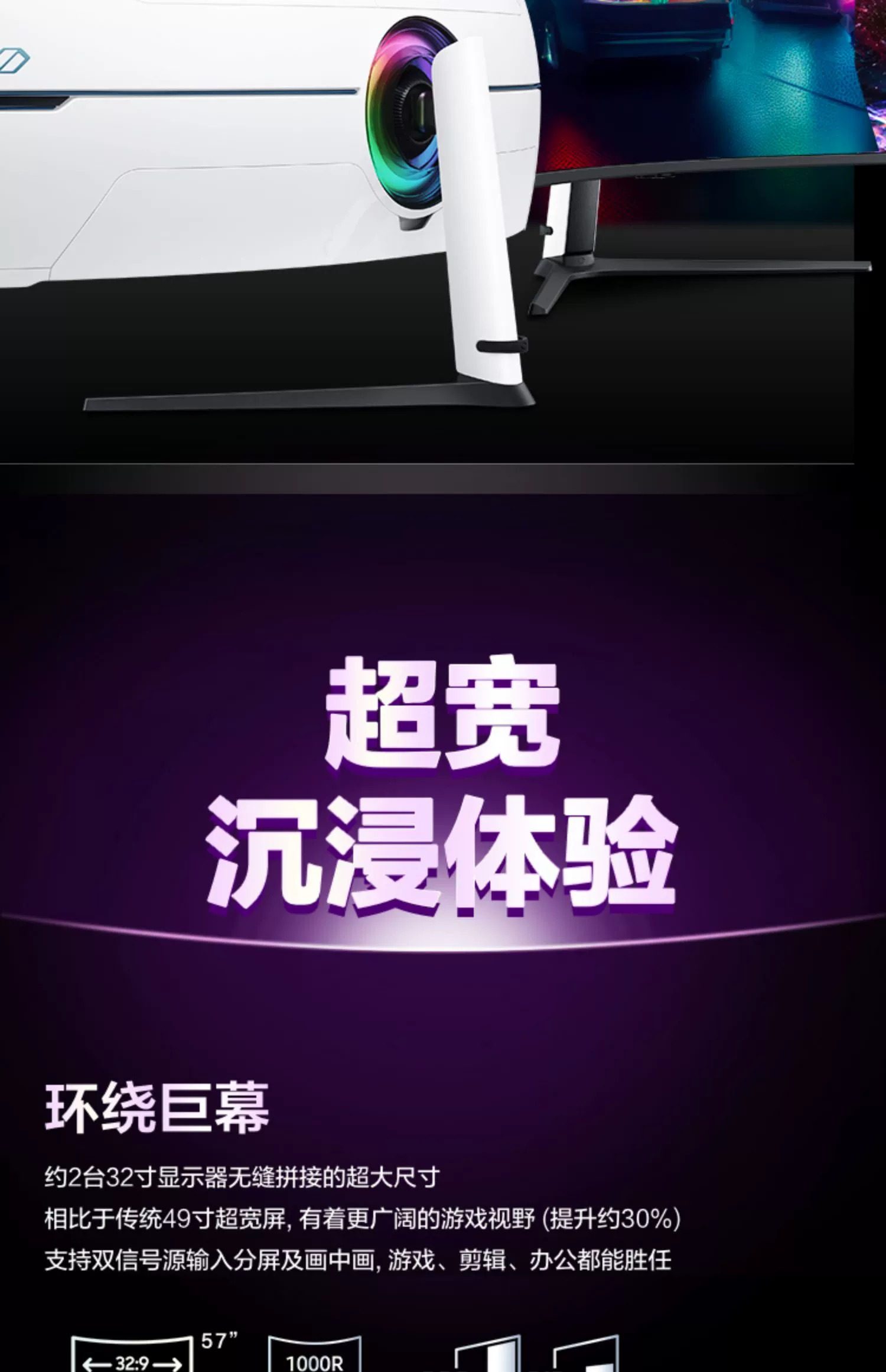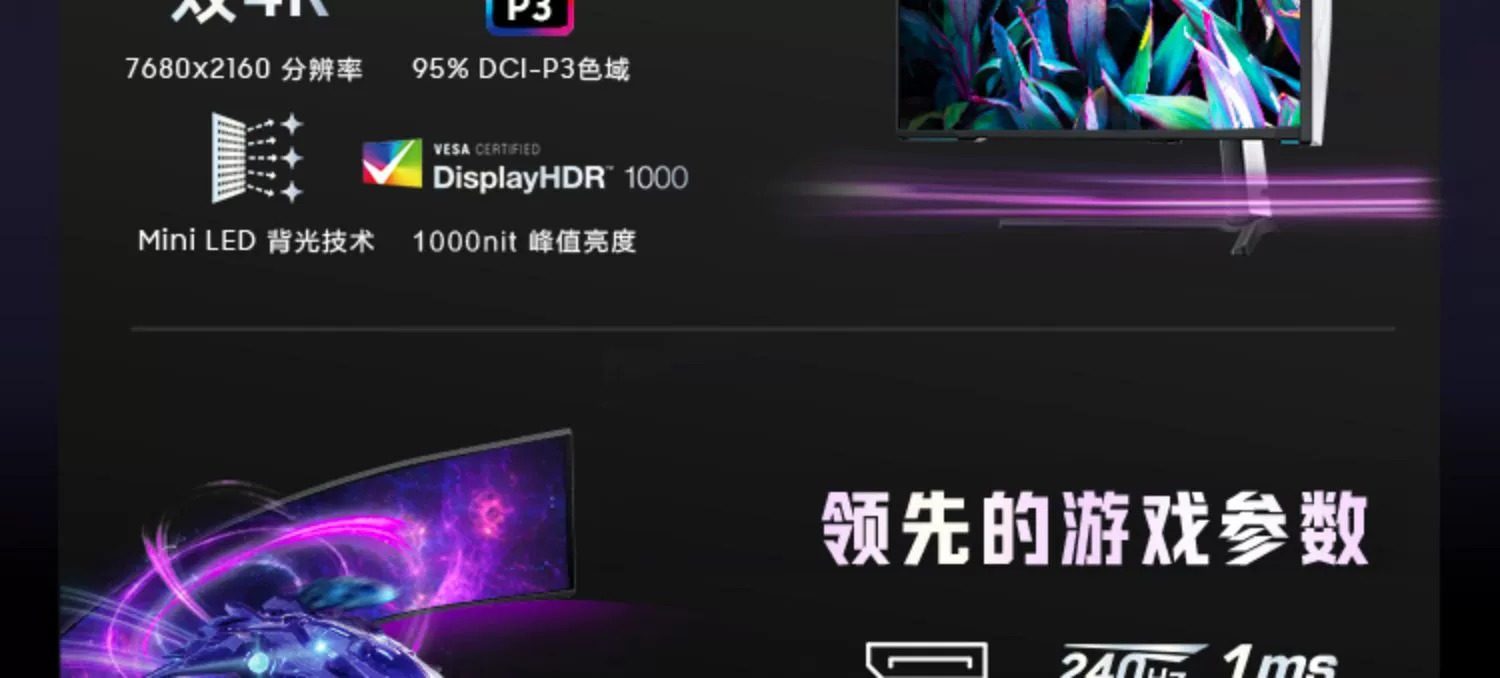 三星奥德赛G9 S57CG952NC 57寸准8K240HZ电竞显示器DP2.1